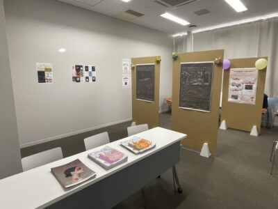展示ブースでは二期会オペラの舞台の秘密や、梅五輪ワーキンググループの活動についてまとめたものをポスターにして展示しました。二期会オペラの舞台の舞台裏やこだわりについて丁寧にポスターを作ったため、驚いてくれるお客様が多く、とても嬉しかったです。私たち自身も二期会のオペラがかなり前からスケジュールを組み立てて舞台を作り、そして何気ない場面でも、手を抜くことなく緻密に完成されていることを改めて知ることができ、ポスターを制作した時間はとても有意義なものでした。