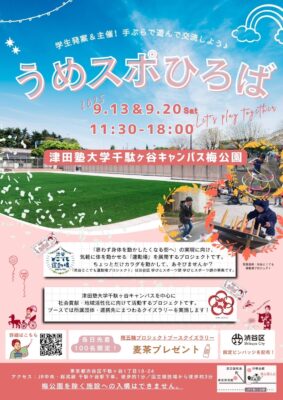 9月13日、9月20日(両日土曜日)に津田塾大学千駄ヶ谷キャンパス梅公園にてイベントを実施します。
